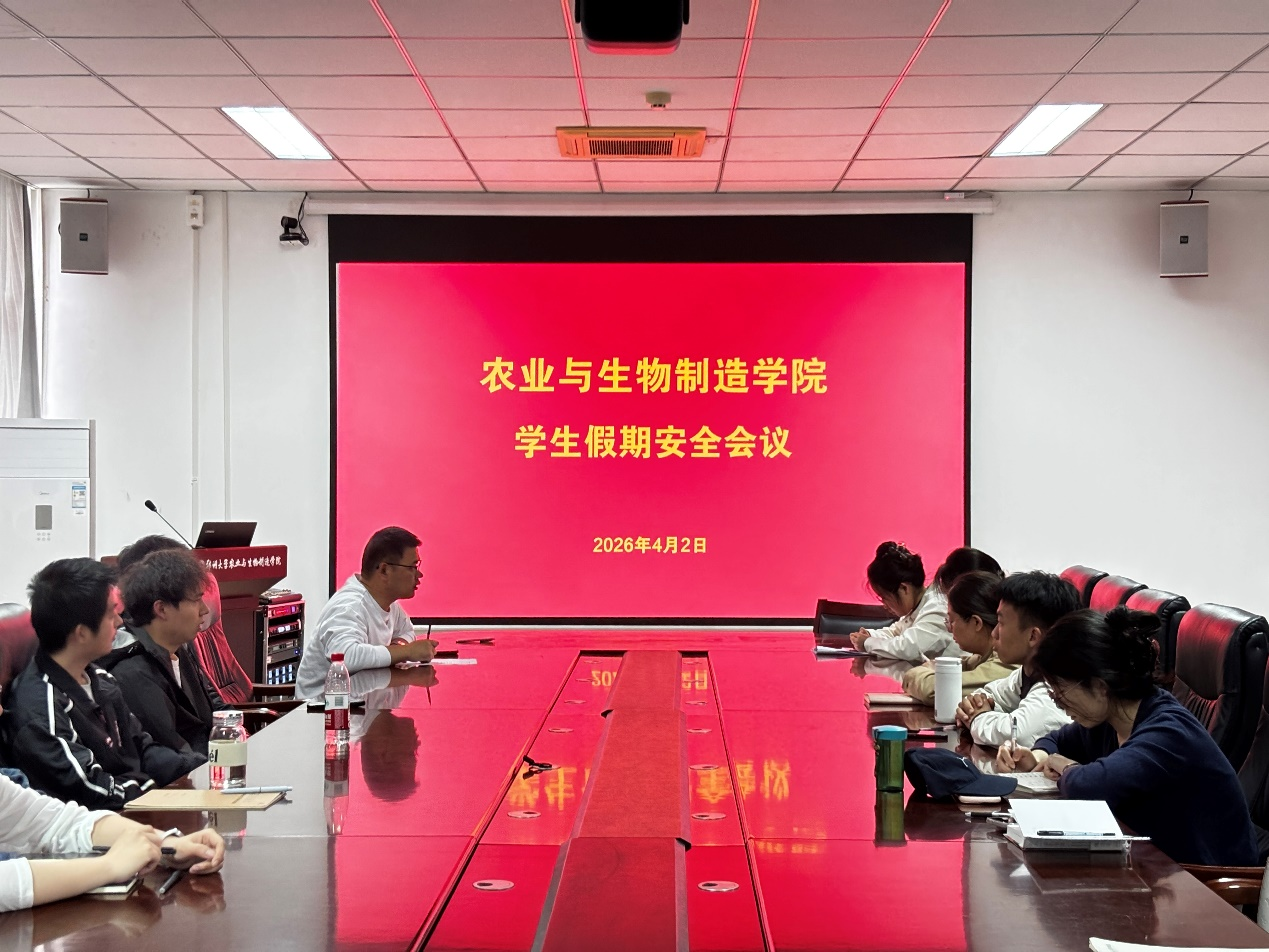 为切实筑牢清明假期学生安全防线,进一步落实学院安全管理责任,在学院党政安排下,近日,郑州大学农业与生物制造学院召开假期安全专题会议。学院团委书记冯小杰、学生工作高级主管殷湘坤出席会议并发表讲话,学院研究生干部及部分学生代表参加此次会议。
