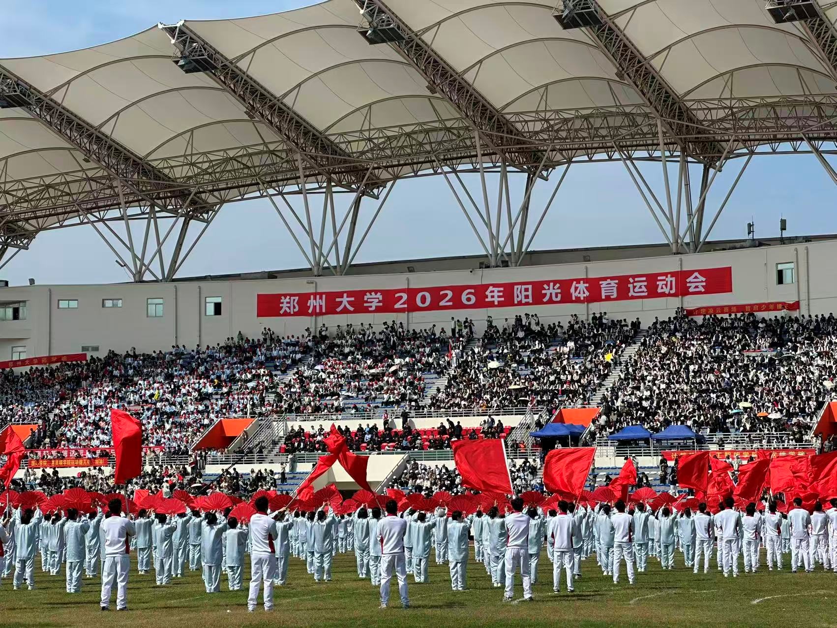 4月9日上午,郑州大学2026年阳光体育运动会开幕式在主校区本源体育场隆重举行。在开幕式大型展演第三篇章《扇韵极·巾帼风华》中,来自郑州大学农业与生物制造学院的女教职工们与来自其他学院及附属机构的女教职工们一起以一场刚柔并济的太极扇表演惊艳全场,成为绿茵场上一道亮丽的风景线。
