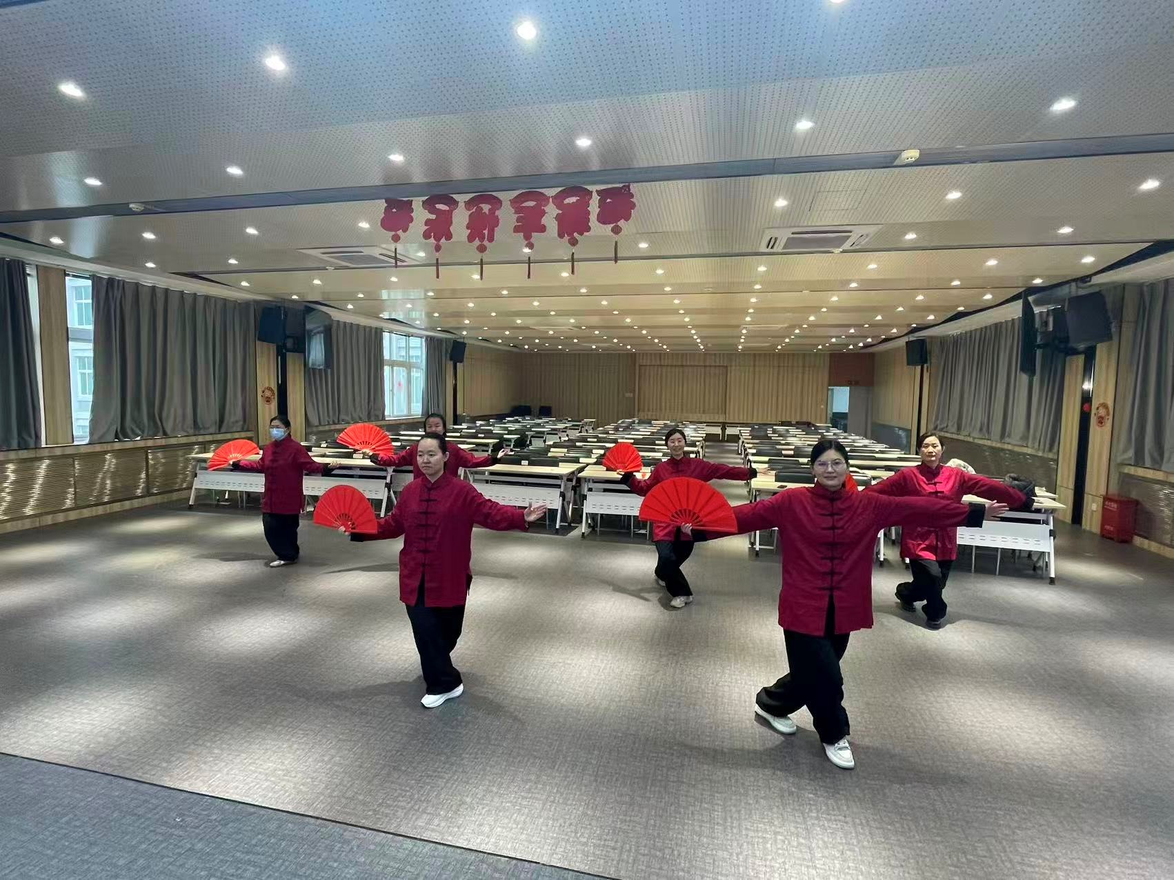 表演过程中,她们将太极的圆融内敛与扇舞的潇洒利落完美融合。伴随着铿锵有力的旋律,老师们开步、起势,动作整齐划一;随着“开扇” 一声令下,红扇齐展,声震长空,一招一式既有太极的沉稳含蓄,又不失女性的柔美与坚韧,充分展现了新时代高校女教职工健康向上、昂扬奋进的精神风貌。