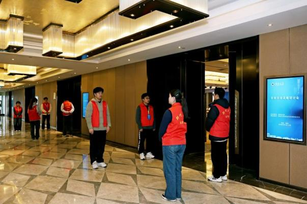 学院团委严格筛选后,挑选出43名优秀团员组成志愿服务队,志愿者们主动靠前、积极作为,于会议召开前一天全部到位,迅速投入紧张有序的筹备工作,各岗位分工明确、各司其职、协同发力。志愿者们分为多个服务小组,分别负责会场引导、茶歇保障、签到服务、餐票管理、场外引导及机动摄影等工作,各项具体服务均由志愿者落实执行,大家各尽其责、默契配合,全力做好会议筹备保障。