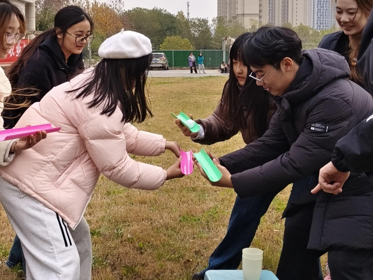 学生组设置多类趣味项目,包括注重团队配合的“球行万里”“一圈到底”,以及富有趣味性的“你划我猜”“旋转定点射门”活动项目。比赛中,同学们热情投入,配合默契,现场气氛热烈,充分展现了农业与生物制造学院师生团结协作、勇于挑战的精神风貌。