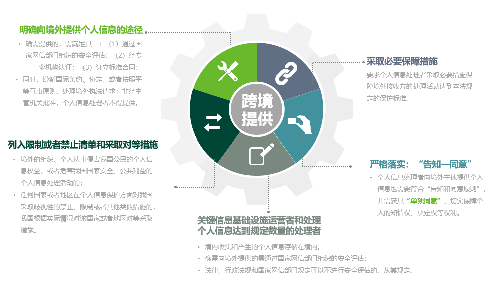 内容:建立个人信息跨境提供全流程管理规范、制度、流程等;明确合规路径,并征得用户的单独同意,确保个人信息安全流通。
