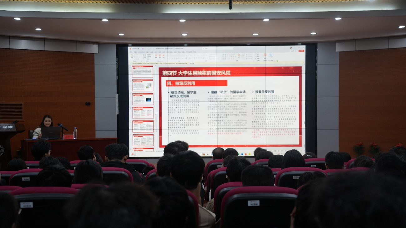 10月22日,院团委副书记、党务秘书、2022级本科生辅导员王梦娴开展“筑牢国家安全防线,彰显青年时代担当”专题讲座。在本次讲座中,她深入阐释了习近平总书记于2014年提出的总体国家安全观,结合现实案例分析了大学生群体易触及的国家安全风险点,并引导学生增强防范意识、恪守法律底线、掌握防护技能、履行报告义务,激励青年学子自觉成为国家安全的坚定守护者。