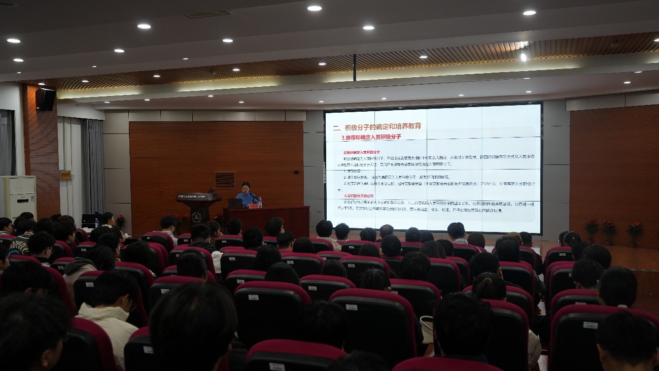 10月21日,院团委副书记、2025级本科生辅导员晋淑静围绕“标准首位、质量提升、从严治党”的原则,将党员发展全过程划分为申请与谈话、积极分子的确定与培养、发展对象确定与考察、预备党员接收、预备党员的教育考察与转正五大阶段。与此同时,她详细解读了25项关键任务的具体要求与时间节点,强调材料规范与程序严谨,从而切实保障党员发展质量。