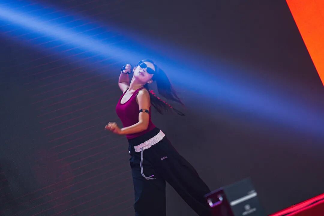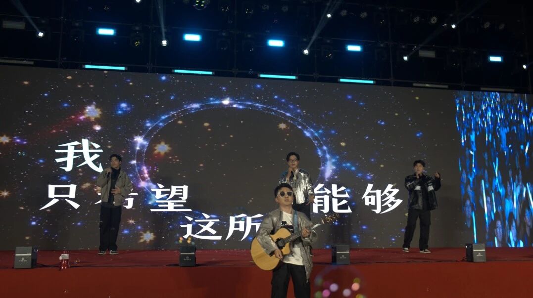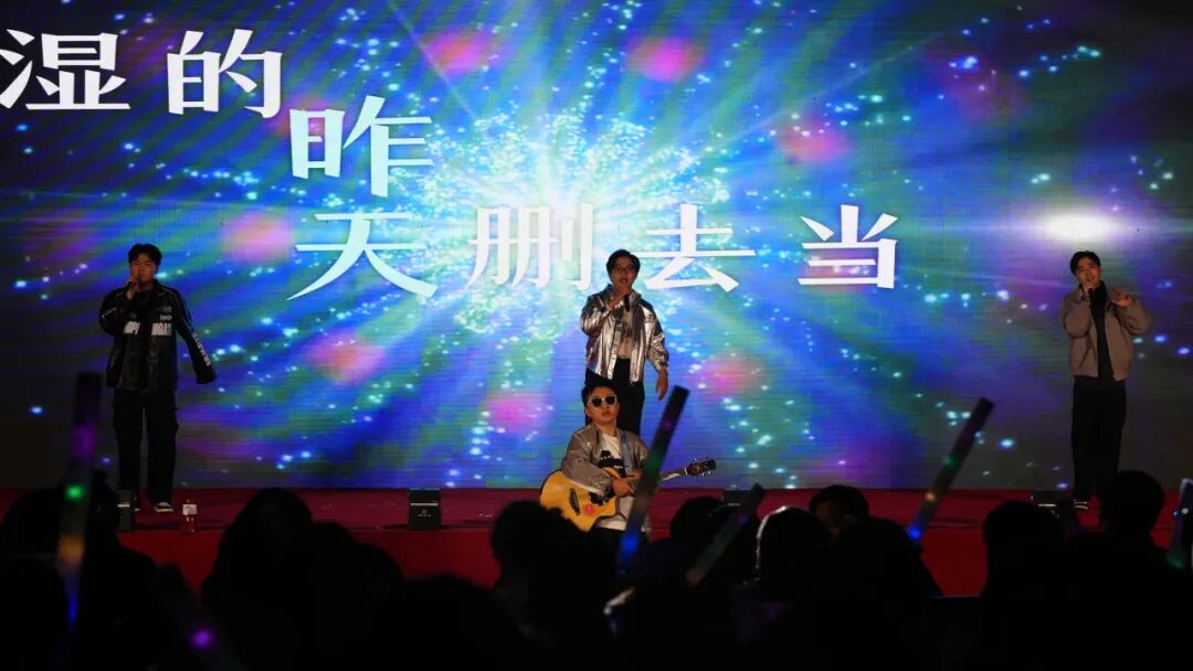 歌曲串烧以清亮嗓音开唱,轻快旋律里荧光棒摇作灯海,深情唱腔引全场喝彩,声浪翻涌间,青春共鸣把晚会热意推至顶峰。