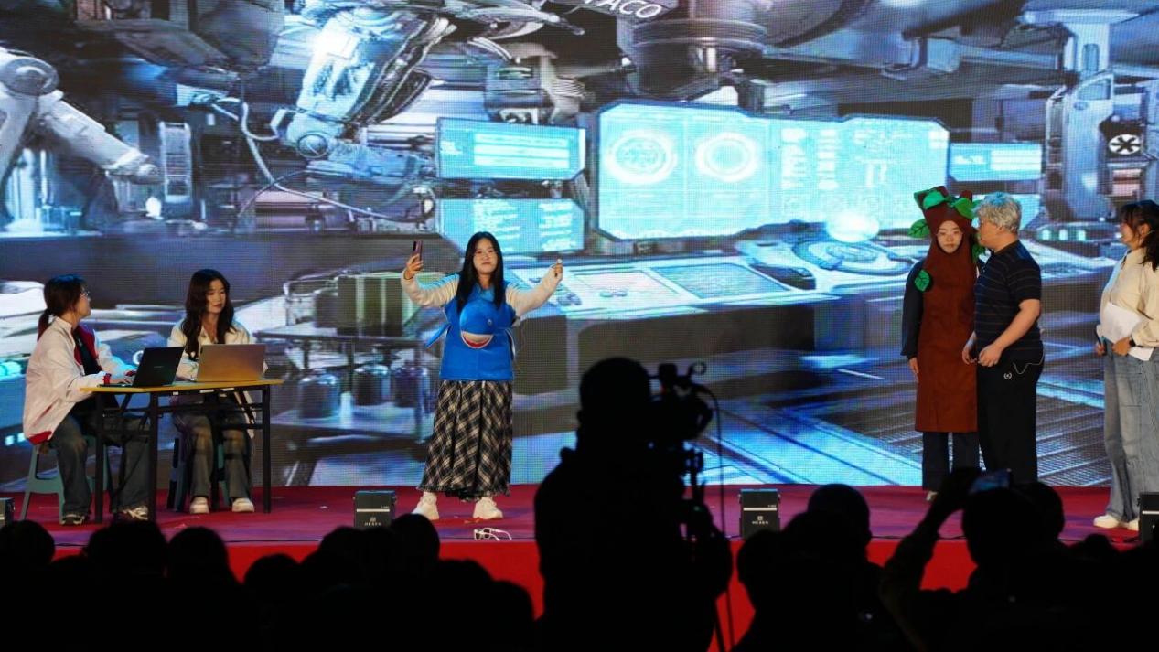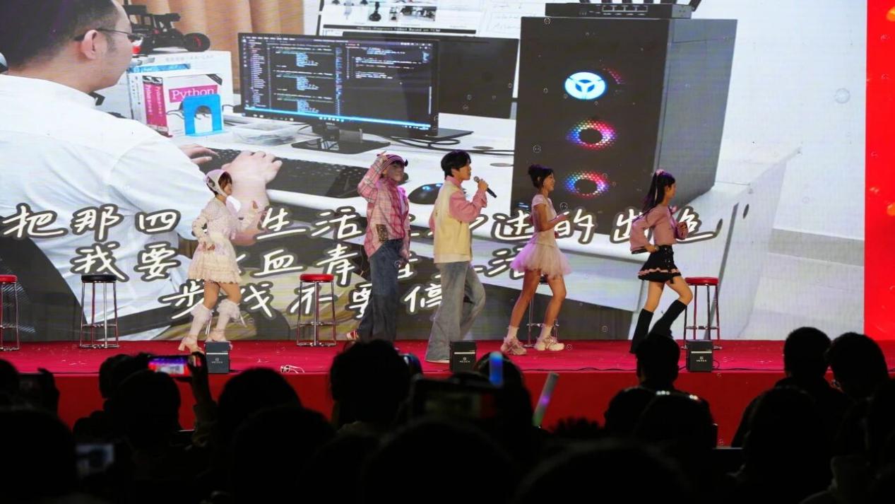 舞蹈串烧《塞博羊村的蹦迪实录》以轻松活力的风格点燃舞台——灵动的步伐裹着青春的跳脱,明快的节奏里揉进新潮趣味,肢体的舒展与动感的节拍碰撞出鲜活的氛围感,让现场的青春气息在跃动中愈发炽热。