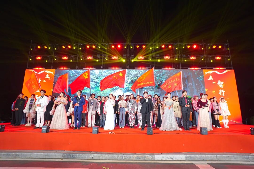 晚会的尾声,全场灯光汇聚,青春的热浪仍在翻涌,伴随着全体师生的合唱,嘹亮的校歌响彻夜空,晚会逐渐拉下帷幕。这一夜,我们以舞为笔、以歌为墨,在“薪火相传”的底色里,写下“青春奋进”的崭新篇章。