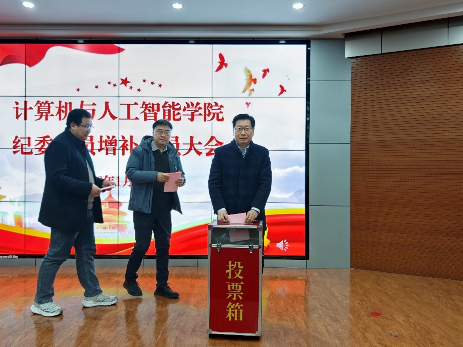 为加强学院党的纪律建设,进一步完善监督管理体系,1月27日下午,计算机与人工智能学院增补纪委委员党员代表大会在学院学术报告厅顺利举行。学院党员领导班子、教工和学生党员代表参加会议。会议由学院党委副书记、纪委书记邵彦江主持。