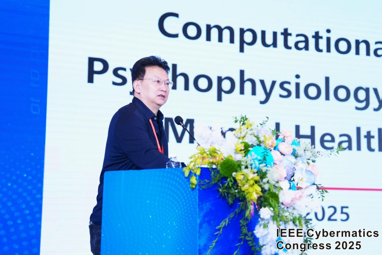 北京理工大学的胡斌教授教授作了题为 “计算心理生理学与心理健康” 的报告。介绍了人工智能与大数据技术为精神疾病诊断治疗带来新机遇,推动医疗模式向“数据驱动的筛查与治疗”转变,提供更精准、个性化方案。