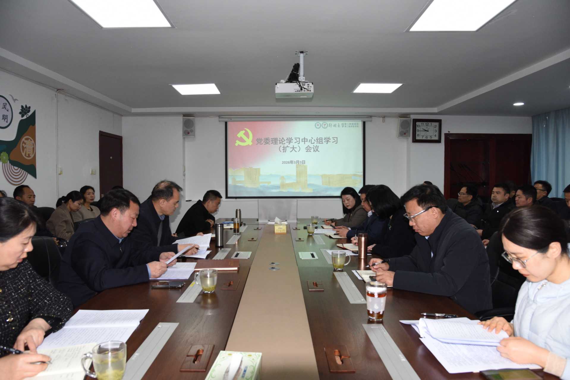 为深入贯彻落实党中央关于在全党开展树立和践行正确政绩观学习教育的决策部署,按照郑州大学党委统一部署和我院年度党委理论学习中心组学习计划安排,3月3日上午,我院召开党委理论学习中心组专题学习(扩大)会议,对我院树立和践行正确政绩观学习教育进行启动部署安排,集中学习了习近平总书记关于树立和践行正确政绩观等重要论述。医院、学院党委理论学习中心组成员、各党总支书记、职能部门负责人参加会议。院党委书记简立国主持会议。