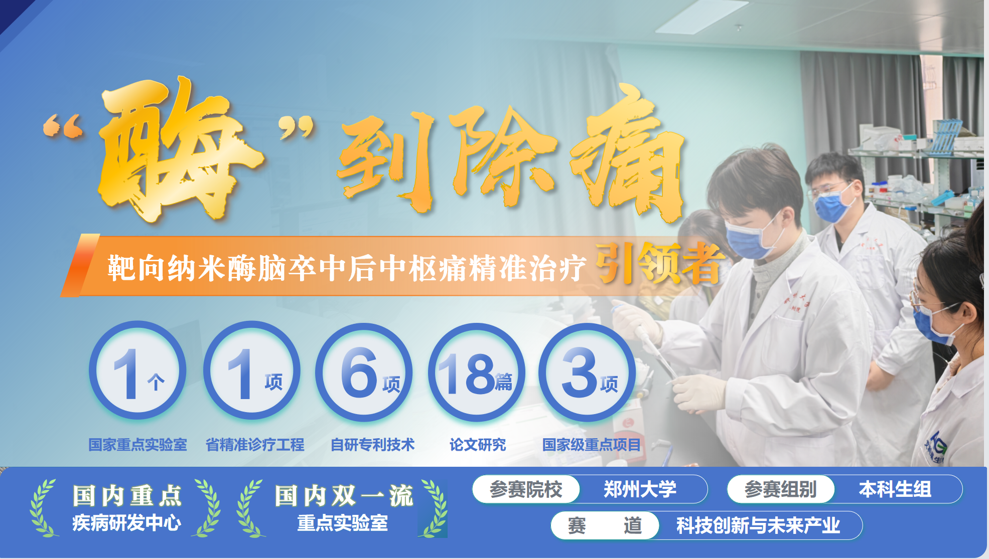 2026年3月21日,郑州大学第十三届“挑战杯”大学生创业计划竞赛终审决赛落下帷幕。由我院本科生团队申报的“酶到除痛——靶向纳米酶脑卒中后中枢痛精准治疗引领者”项目,作为学院成立以来首次参加“挑战杯”创业计划竞赛的代表作品,在终审决赛中进行了精彩展示。