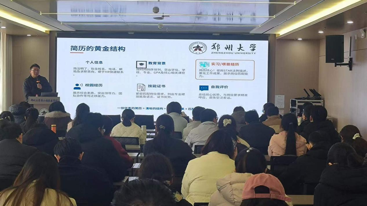 为切实做好2026届毕业生就业指导工作,帮助毕业生明晰就业政策、规范就业手续、提升求职技能,解决求职过程中的实际困惑。3月19日,我院特邀郑州大学大学生就业创业指导服务中心张耀文老师,开展2026届毕业生就业政策宣讲会及简历辅导,学院党委副书记王晓颖、学生工作办公室主任郭枭健、副主任孙莹、辅导员赵美华老师及2026届全体毕业生参与会议。