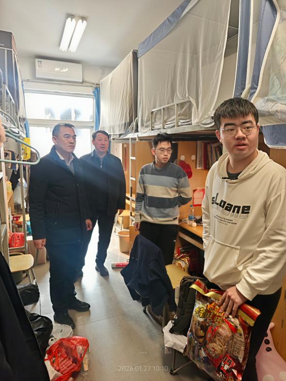 寒假伊始,校园渐静,但学院的关怀持续升温。1月27日上午,第二临床医学院党委书记简立国、院长刘超,党委副书记王晓颖、学生工作办公室主任郭枭健、辅导员吴秀丽一行前往学生宿舍,看望暂时留校的学生,为他们送去新春祝福与学院的温暖。