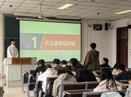 2024级采用主题班会和宣讲相结合的形式组织活动。1班以“什么是电信诈骗”为切入点,通过互动问答调动现场参与热情,重点拆解冒充国家工作人员诈骗的作案流程与话术套路,系统讲解“防电信诈骗十守则”,最后以反诈口号作结,提醒同学们守好个人信息与财产安全底线。2班创新采用沉浸式教育、互动式体验相融合的模式,通过数据可视化直观展现反诈形势,深度剖析刷单返利、游戏虚假交易等五类高发骗局,结合真实案例复盘强化警示效果,讲解“三不一多”防范原则与受骗后四步应急处置流程,号召大家争做校园反诈宣传员。