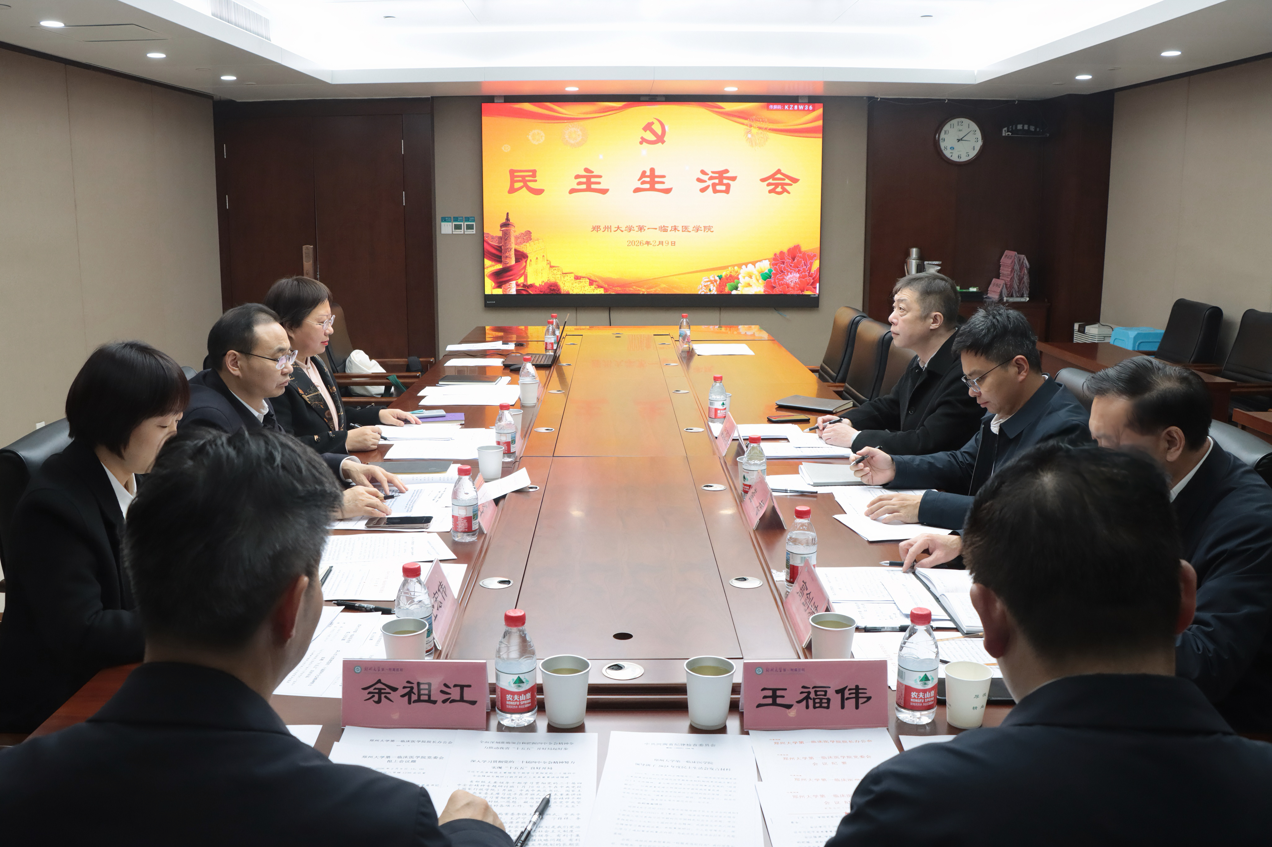 2月9日,郑州大学第一临床医学院2025年度领导班子民主生活会在一附院东院区八号楼1230会议室召开。会议聚焦“带头强化政治忠诚、带头固本培元、带头敬畏纪法、带头担当作为、带头管党治党”的核心要求,深入进行党性分析,严肃开展批评与自我批评,明确整改方向与措施。学院全体领导班子成员参加会议,会议由学院党委书记王福伟主持。