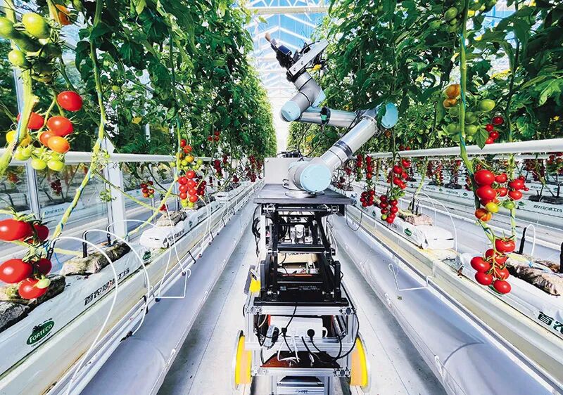 加快人工智能技术与各行各业、各种应用场景深度融合,对于推动经济社会高质量发展具有重要意义。图为2024年11月29日,智能育种机器人“吉儿”在位于北京的一个现代化商业温室中进行番茄自动杂交授粉操作。 新华社发 中国科学院遗传与发育生物学研究所供图