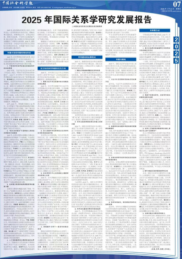 2025年,国际关系研究稳步向前,但面对世界百年未有之大变局的加速演进,其理论供给不足、学科发展内生动力不够等问题也随之出现。随着区域国别学、国家安全学等一级学科建设步入快车道,国际关系研究在某些领域存在的短板亦日渐显现。