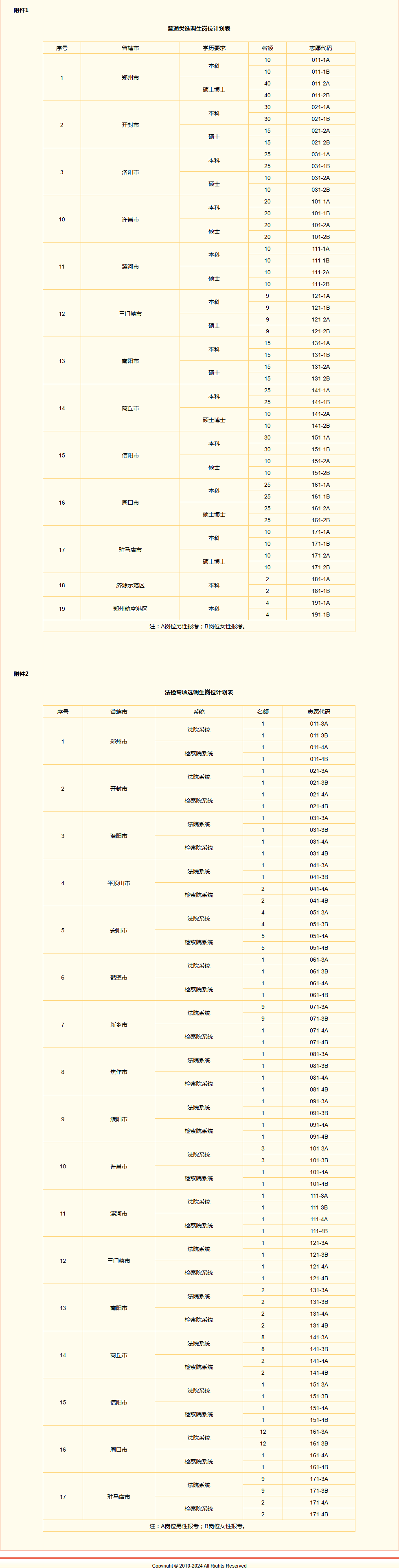 各省辖市(含济源示范区、郑州航空港区,下同)招录计划见附件1、2。