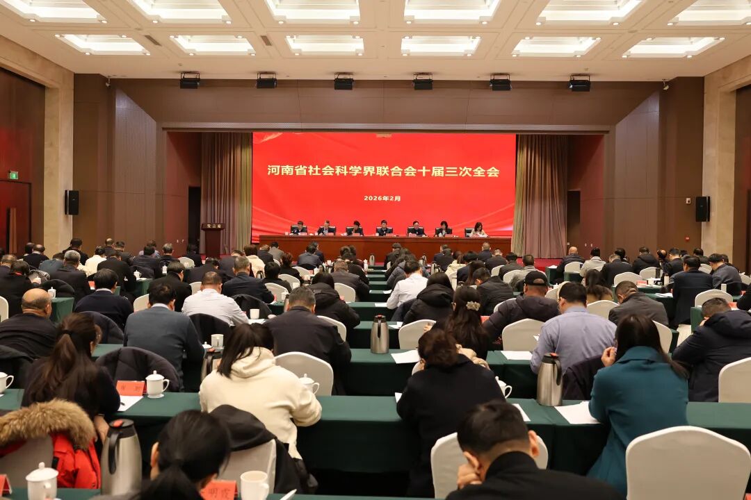2月9日,省社科联十届三次全会在郑州召开。会议主要任务是回顾总结全省社科联系统2025年工作,分析社科工作面临的新形势新任务,安排部署2026年工作。省委宣传部一级巡视员王自合出席会议并讲话,省社科联党组书记、主席李庚香代表第十届委员会主席团向大会作工作报告,主席团成员、十届委员会委员、省社科联处级以上干部以及新闻媒体记者等共200余人参加会议。会议由省社科联党组成员、副主席赵勇主持。