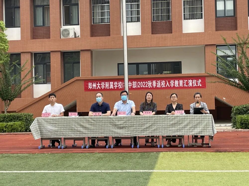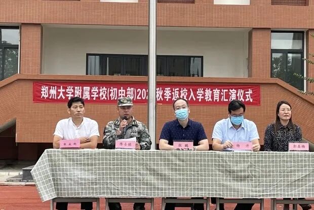 秋风瑟瑟雨微凉,8月27日下午,郑州大学附属学校(初中部)2022学年军训闭营仪式在操场隆重举行。郑大附校校长杨升、督学郭春梅、副书记张鹏、副校长王远丽出席本次结营仪式。仪式由德育副主任靳雯斐主持,全体教师共同参与。