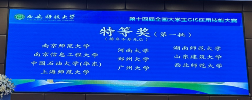 11月14日至16日,第十四届全国大学生GIS应用技能大赛在西安科技大学举办。郑州大学地球科学与技术学院本科生王心慧、邢天豪、张靖靖、李晨阳组成的团队,凭借过硬的专业功底、默契的团队协作,在激烈比拼中脱颖而出,荣获大赛特等奖。指导老师李爱民、陈琛荣获优秀指导教师。