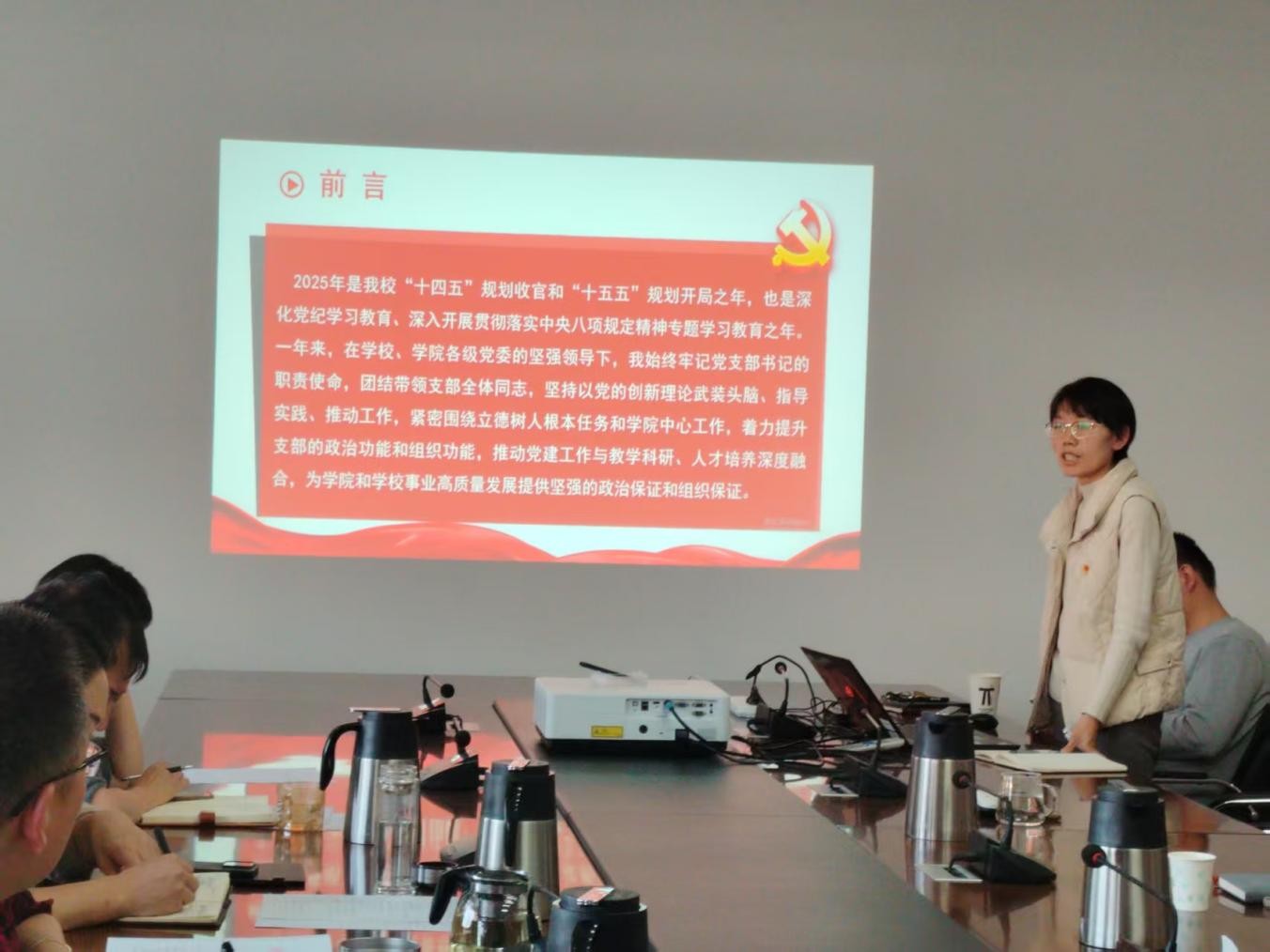为深入贯彻落实学院党委关于基层党建工作的部署要求,全面检验各党支部2025年度党建工作成效,进一步压实党支部书记抓党建第一责任人职责,1月15日下午,学院在南校区18号楼8楼会议室召开2025年度党支部书记抓基层党建述职评议会。学院全体领导班子、各基层党支部委员、辅导员和党政办负责同志参加会议,会议由学院党委书记陈颖主持。