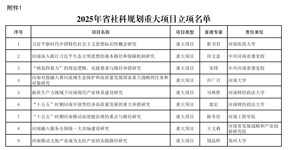 11月21日,河南省哲学社会科学规划工作事务中心公布了2025年度河南省社会科学规划项目立项结果,我院饶品样教授的《河南推动文旅产业成为支柱产业的实践路径研究》获批重大项目立项。此次全省共立项9项重大课题,其中郑州大学立项1项。