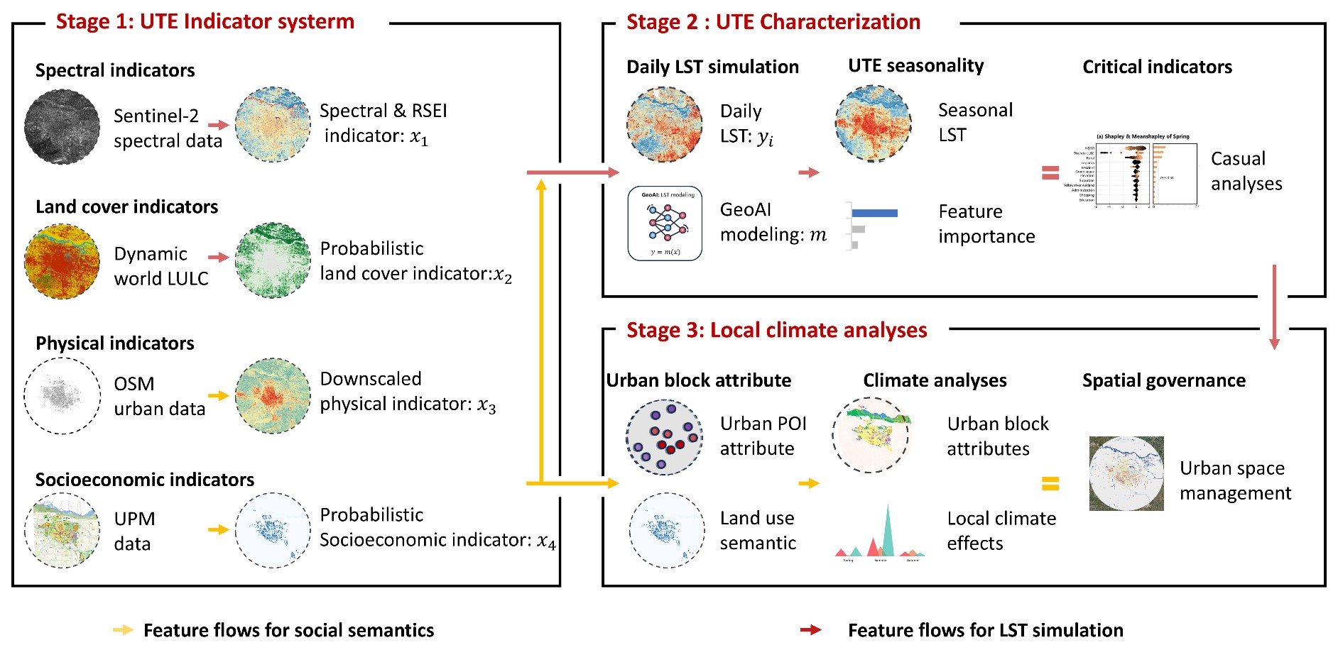 城市热环境研究对于应对气候变化、推进城市韧性治理具有重要意义。然而,传统研究多依赖物理特征与土地覆盖数据,对人类活动与城市物理环境交互作用背后的社会经济结构特征缺乏精细化表征。本研究创新性地挖掘城市规划图中蕴含的土地利用语义信息,构建了城市社会经济信息的无缝空间化表达框架,从而在广度和精度两个维度上显著提升了城市热环境的刻画能力。研究结果表明,社会经济指标在城市热环境建模中的贡献率达48.3%–54.6%,有效增强了模型对城市热环境空间差异的解释能力,为城市热风险治理与规划决策提供了有力的数据支撑。