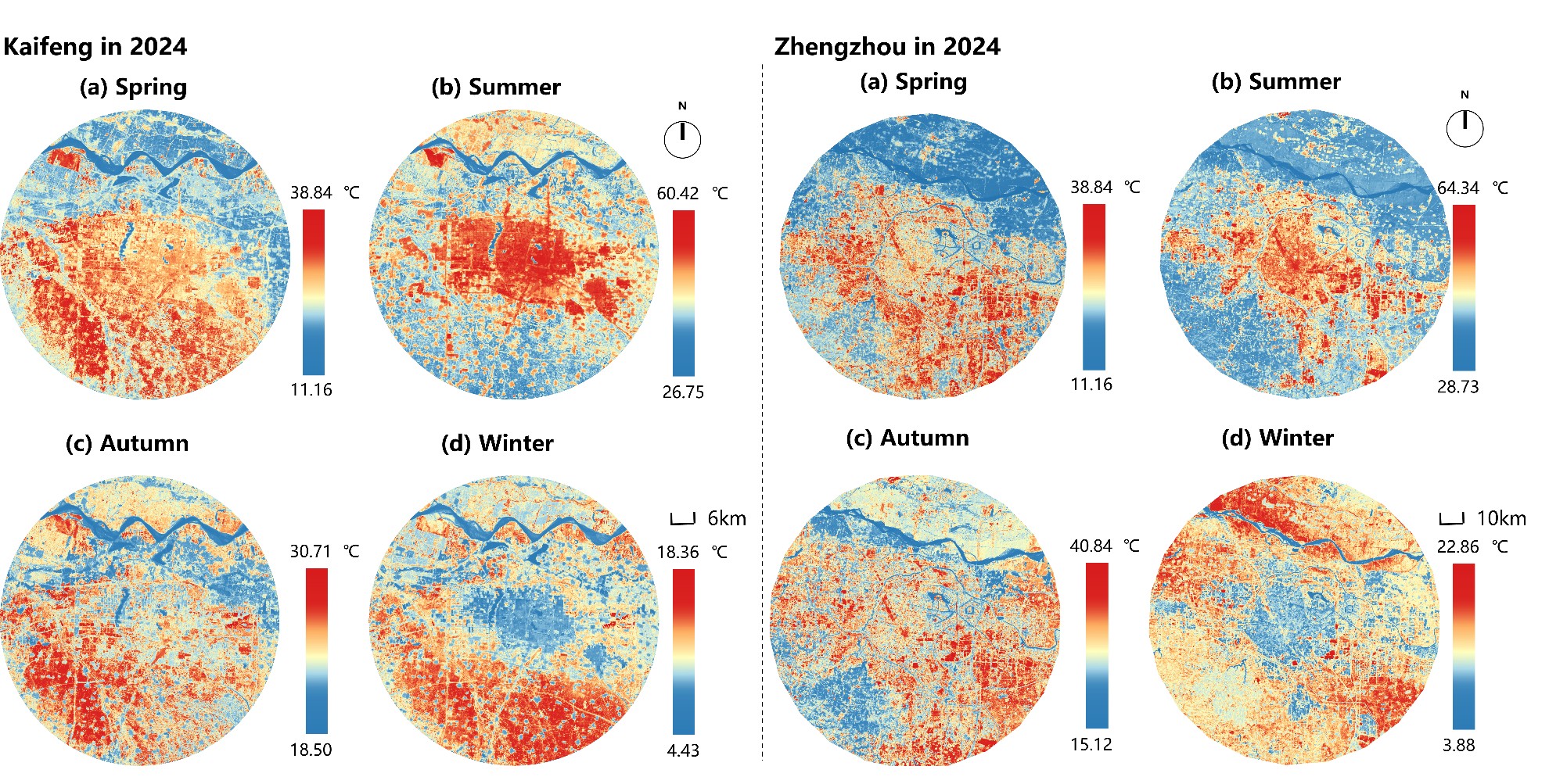 图2 2024年开封和郑州城市热环境量化结果