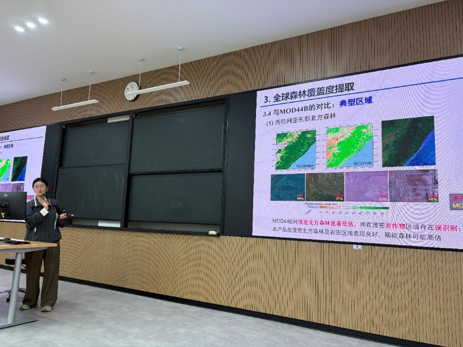 报告中,魏老师着重阐述了森林在地表碳循环、水循环、气候调节、水土保持以及生物多样性保护中的不可替代作用,介绍了光学遥感、激光雷达、微波雷达等多类型卫星数据,如何被用于数字化地表森林信息,构建全球尺度的森林变化监测系统。同时,针对当前森林覆盖度遥感产品普遍存在的算法适用性、稳定性和产品质量等问题提出了创新思路。最后,魏老师展示了该数据产品在多个典型场景中的应用案例,包括亚马逊森林砍伐事件监测、西伯利亚森林火灾与恢复评估、华北地区造林成效分析,以及中国森林恢复进程的定量刻画。整场报告深入浅出,引人入胜,在场同学们被魏老师的精彩讲解深深吸引,踊跃提问,与魏老师进行深入交流。