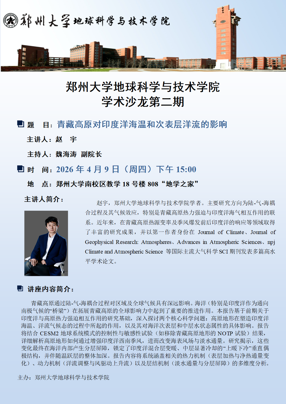 讲座地点:郑州大学南校区教学18号楼808“地学之家”