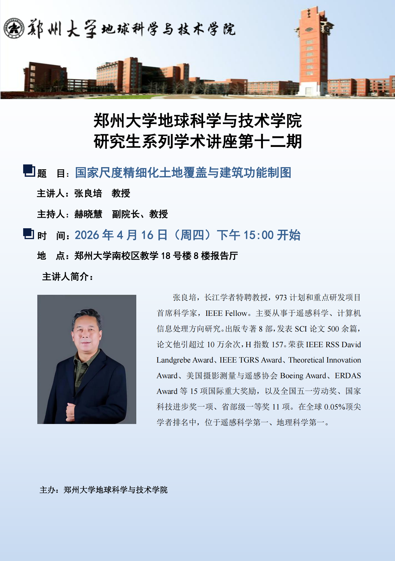 地球科学与技术学院邀请国家高层次人才张良培教授做学术报告