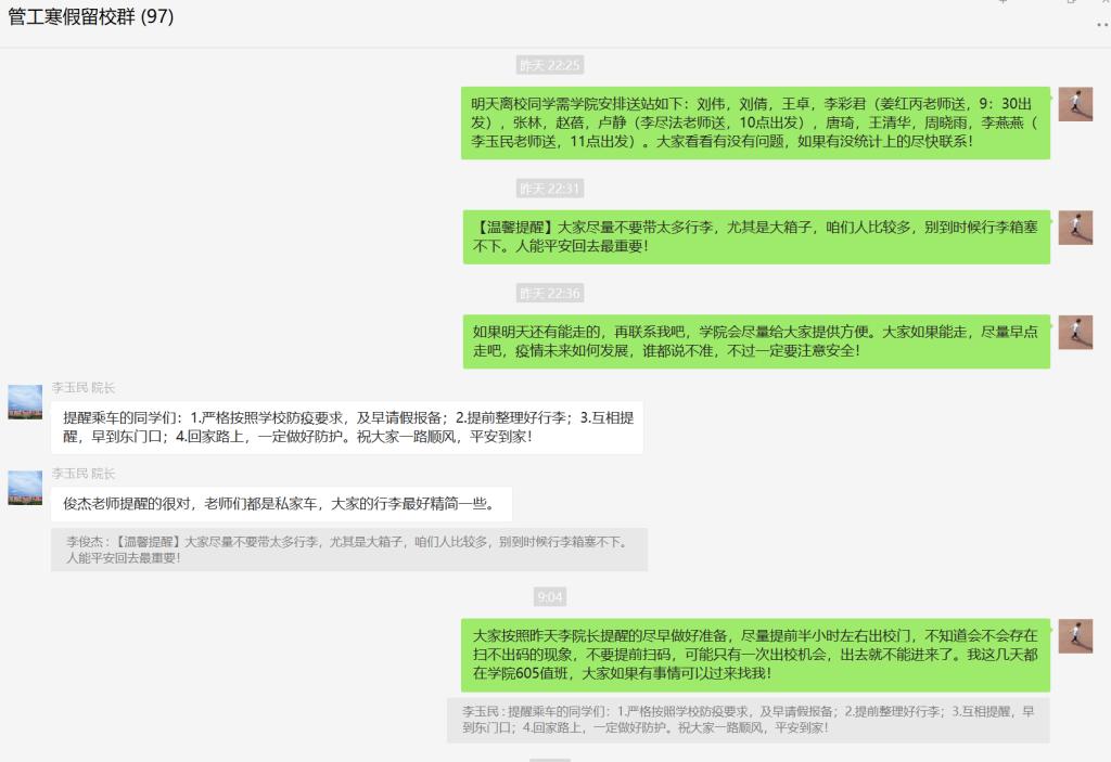寒假伊始,鉴于郑州市疫情防控的严峻形势,1月9日我校再次提升了校园疫情防控等级,校园实行了全封闭管理,我院有近100名研究生因未及时离校,被封闭在宿舍内。事发突然,得知这一情况后,我院党政班子领导立即行动起...