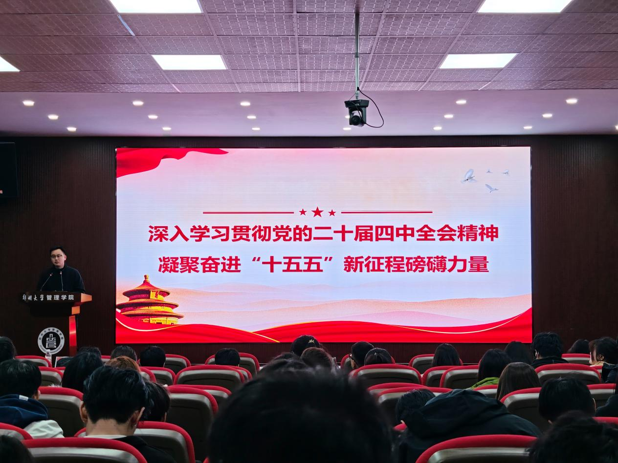 11月19日晚,辅导员张仕杰老师带领学员们深入学习了党的二十届四中全会精神,讲解了全会的核心内涵与精神实质,阐述“十五五”的重要意义。他号召同学们要紧跟党的步伐,坚定信念跟党走,勇担时代使命,在推进中国式现代化的伟大实践中积极作为,为中国的美好未来添砖加瓦。他强调,广大青年要不断加强思想政治理论学习,提高自身政治素养,筑牢信仰之基、补足精神之钙、把稳思想之舵,同时要立足自身,脚踏实地,用实际行动践行青年担当。