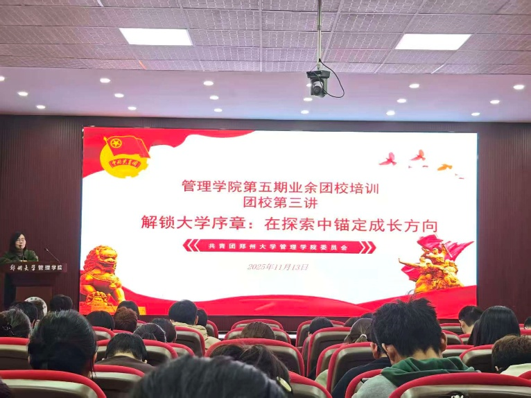 11月13日晚,学生工作办公室高级主管杨柳燕老师开展了主题为“解锁大学序章:在探索中锚定成长方向”的第三讲。杨老师告诉同学们不能仅仅满足于课堂知识的学习,更要树立正确的青春坐标系树立远大目标,以昂扬的姿态和饱满的热情向着目标不断前进。她勉励同学们在日常生活中,要养成良好的习惯,加强锻炼身体,保持强健体魄。同时也要重视心理健康,培养积极向上、理性平和的心态,以奋斗定义青春价值,以实干开创辉煌未来。
