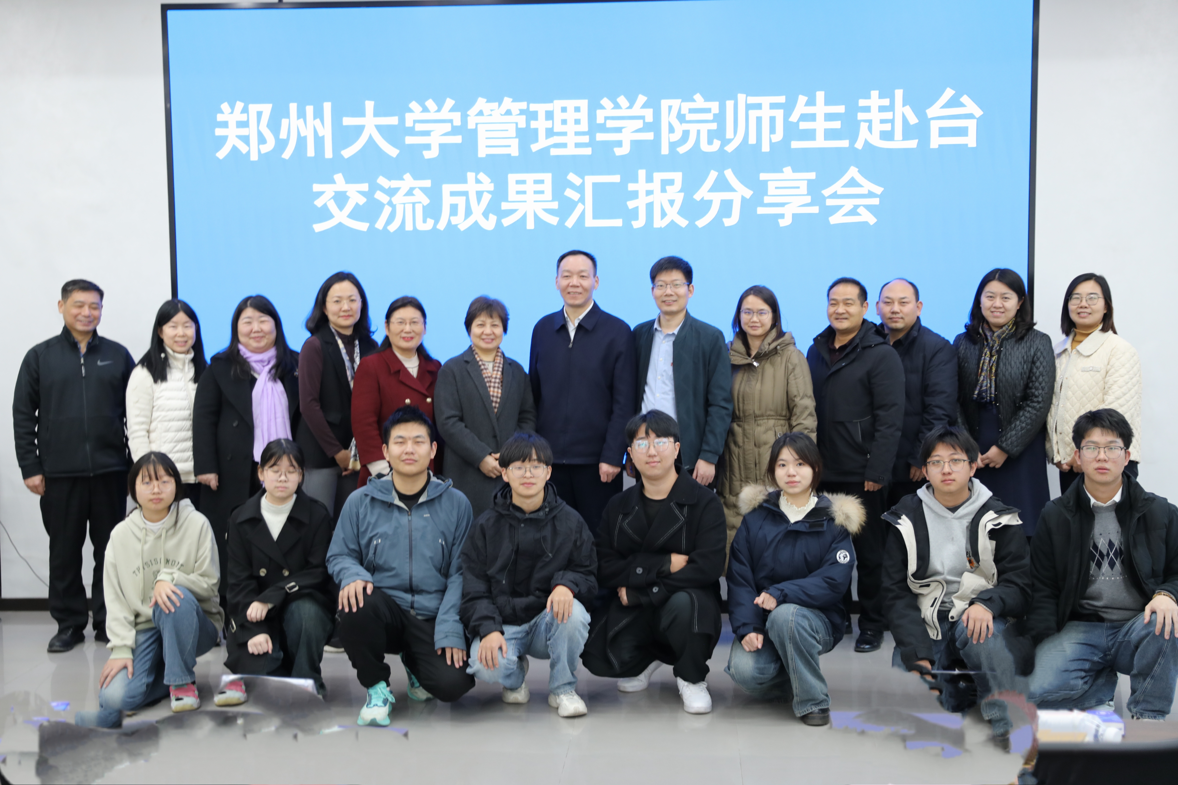 2026年1月13日下午,郑州大学管理学院在1号楼109会议室隆重举办2025年秋季学期师生赴台交流成果汇报分享会。会议邀请到学校国际交流与合作处、港澳台事务办公室领导,管理学院党政班子成员、系所负责人以及师生代表共同参与。