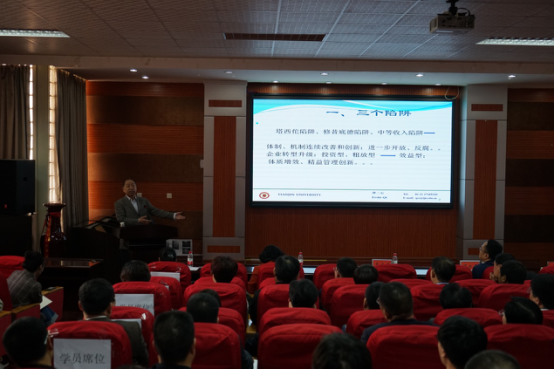 讲座于9:30正式开始,齐二石教授从政治经济学界的三大著名陷阱,即“塔西佗陷阱”、“修昔底德陷阱”、“中等收入陷阱”起篇,富含逻辑而不失趣味地引出“发现规律,精益管理”这一深刻启示。接着,齐教授从综合创新系统、企业发展源动力、管理的特征、美日德企业的转型升级等四个方面详细阐释了企业管理的创新性,并进一步指出工业工程是精益生产与管理的理论基础与方法基础,同时,齐教授强调了文化之于管理的影响,指出管理的两大特征是创新性和累积性,而美日德的企业转型升级案例也印证了地域邦国的不同文化积淀造就了工业工程不同的典范。其后,齐教授又在分析我国制造企业转型升级现状的基础上,讲述了管理创新的前提和条件,即技术、文化、机制和发展阶段。最后,齐教授以中电科技、郑州三华科技实业有限公司精益项目以及服务业工业工程与精益管理创新为例,简要评述了我国的精益管理创新现状。
