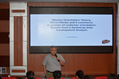 2019年3月19日下午,美国德克萨斯大学终身教授Jose Humberto Ablanedo-Rosas应我校研究生 “名师名家讲坛”邀请,在郑州大学新校区管理工程学院报告厅(化学馆308)举行学术交流会,本次专题讲座以《顾客消费导向代表:市场导向理论、社会媒体与电子商务-基于数据包络分析》为主题,我院多位教授及17级、18级硕士研究生均参加了本次报告。