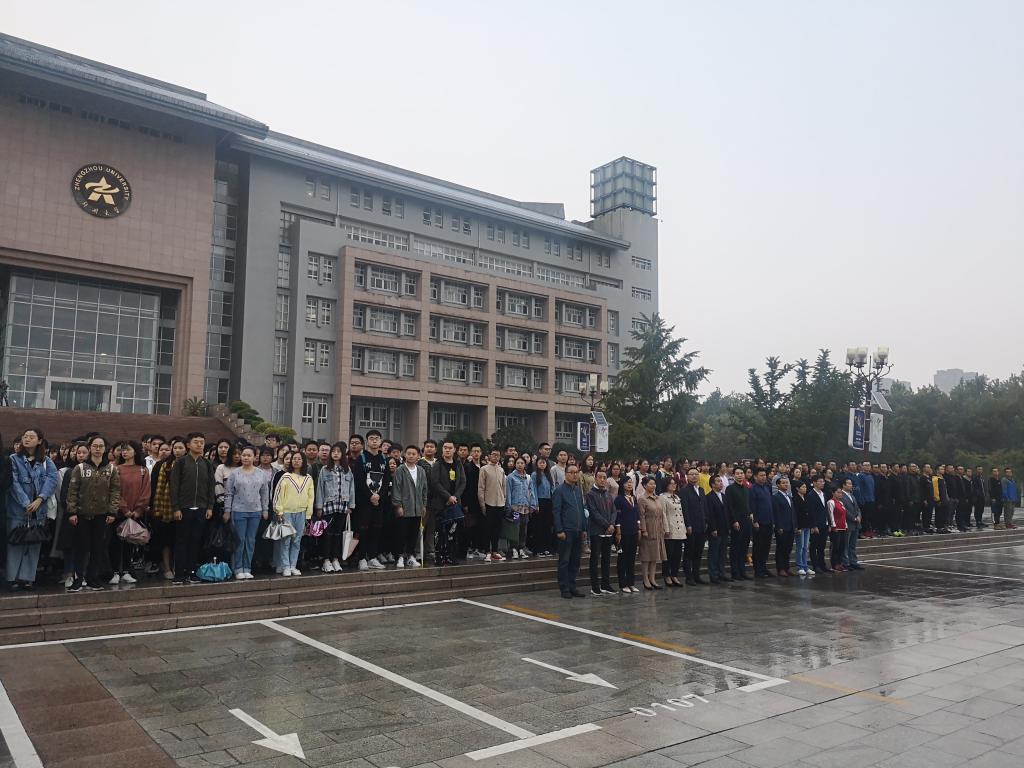 伴着清晨的雾气,迎着初升的朝阳,旅游管理学院党委书记岳林强、院长李金铠、党委副书记郎亚东、副院长朱美光、副院长田晓于近期携学院教职工、四个年级全体学生共九百余人在五星广场前整齐列队,参加郑州大学升旗仪式。