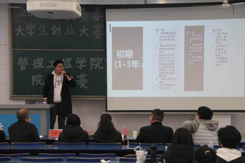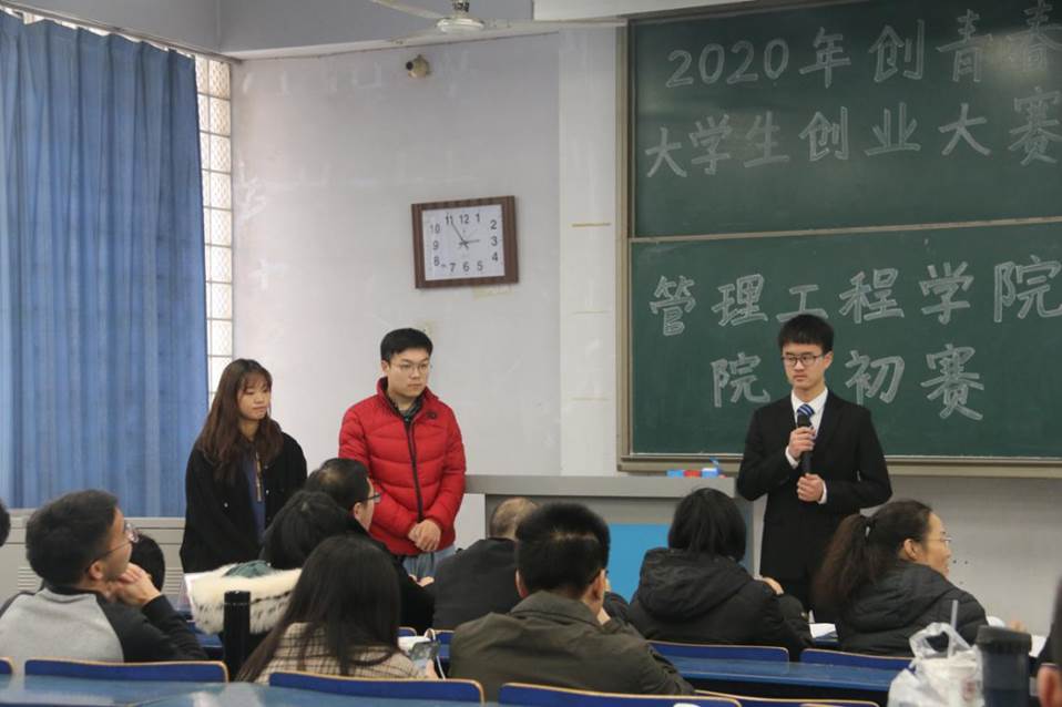 秉承创新精神,锐意创新进取。为提升学生创新意识,启发同学们的创新思维,培养创新型人才。管理工程学院于12月8日下午在化学馆107教室举办2020年“创青春”大学生创业大赛院系初赛,管理工程学院张金灿、张孟豪、张晶蓉、常鹏程、金振辉、刘会新老师担任本次大赛的评委。