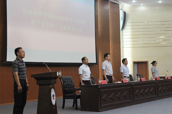 朗朗金秋,丹桂飘香。为了帮助2020级新生更好地适应大学生活,9月18日晚7:00,旅游管理学院2020级新生开学典礼暨“爱学校”主题教育活动在法学院模拟法庭举行。党委书记岳林强,院长李金铠,副书记郎亚东,副院长朱美光、田晓,教授委员会成员,各专业负责人、各办公室负责人,各年级辅导员,2020级班主任,出席本次活动。旅游管理学院2020级全体新生参加了开学典礼。典礼由副书记郎亚东主持。