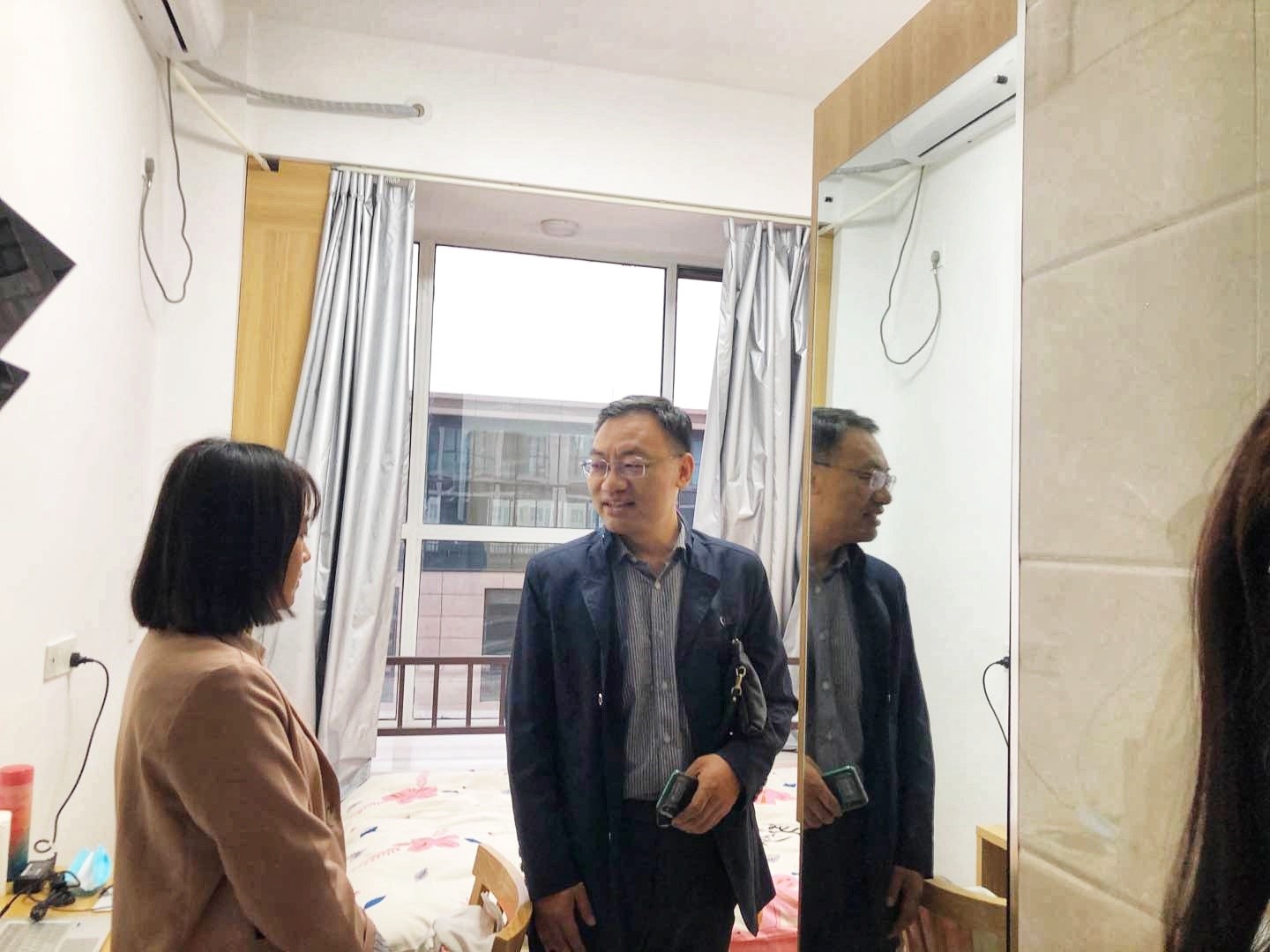 迎新期间,院长李金铠向办理入学手续的新同学表示热烈欢迎,并详细询问了同学们的出行工具、携带的行李,并叮嘱各位同学要注意休息,以饱满的精神状态迎接新的研究生生活,并与负责接待的师生合影留念。在各项迎新工作顺利完成后,学院郎亚东副书记携同研究生辅导员魏伟老师及志愿者们前往新生宿舍看望,并将提前准备好的消毒液分发至各位学子的手中,嘱咐各位新生提高安全防范意识,营造安全文明的宿舍文化,各位新生表示会加强自我管理,养成积极向上的生活习惯。