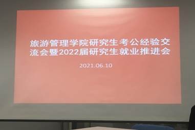 为帮助我院研究生解答择业和备考上的疑问和困惑,促进其择业热情并提升就业质量,我院于6月10日晚学院一楼导播室邀请了6位被全国不同地区公务员录取的考公优秀代表刘志、郝彩云、王梓伍、马展、薛杨和元少华等研究生,6月10日晚在学院一楼导播室举办了旅游管理学院研究生考公经验交流会暨2022届研究生就业推进会,全院约八十位研究生参与此次交流会,研究生辅导员魏伟老师主持此次分享会。