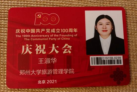 王淑华教授为旅游管理学院旅游管理与规划系优秀教师,硕士生导师,长期从事旅游目的地开发与管理相关教学及科研工作,同时担任旅游管理学院工会主席。王淑华教授于2019年12月提出入党申请,向党组织提交了入党申请书,并于2021年4月份光荣地加入中国共产党,成为一名中共预备党员。对于受邀参加如此隆重的庆典,王淑华教授表示自己作为中国共产党的新鲜血液感到万分荣幸,也由衷地感谢党组织的培养和信任。