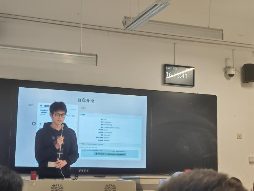 张鑫同学介绍了大学每个学年中的重要事项及其时间节点,从目标、行为等角度分享了提高保研、工作、考研和考公成功率的要点,详细分享了自己选择市场营销专业的心路历程以及对本专业的热爱;杨欣瑶同学着重分享了自己的学习经验,强调了数学、英语学习的重要性,传授了专业课和通识课的高分技巧;沈登科同学则根据自己多次参加国赛的竞赛经历,从竞赛技能、团队组建、创意构思、实战案例全方位分享了自己的经验和教训。