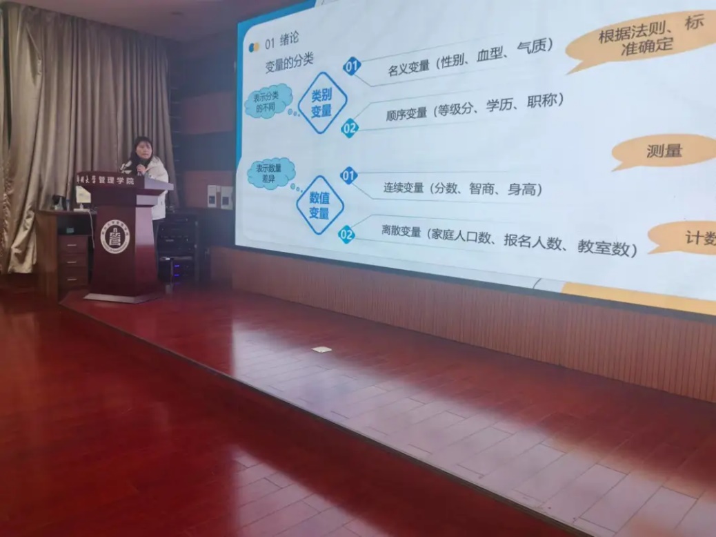 2024年11月27日晚,管理学院在三号楼308报告厅举办了“数据分析方法”专题培训。本次培训作为“社会调查问卷设计”培训讲座的延续,旨在培养学生独立进行数据分析的能力,为备战“挑战杯”全国大学生课外学术科技作品竞赛打下坚实基础。活动依托双创班课程展开,由王珂珂老师主讲,班主任李普林主持,双创班全体学生参加。