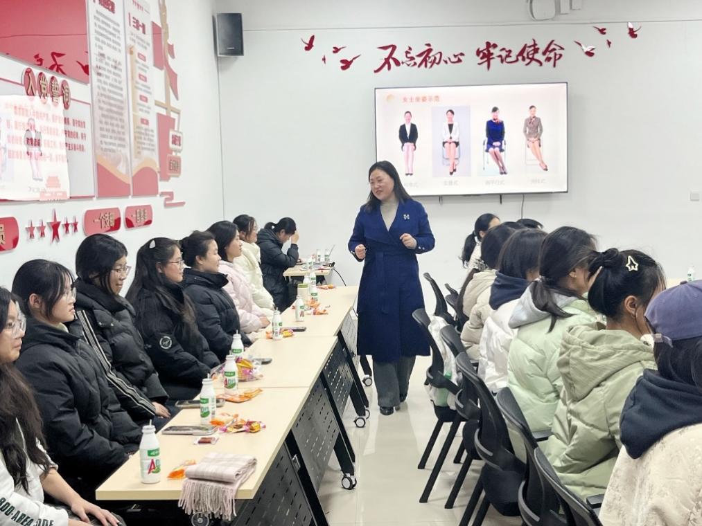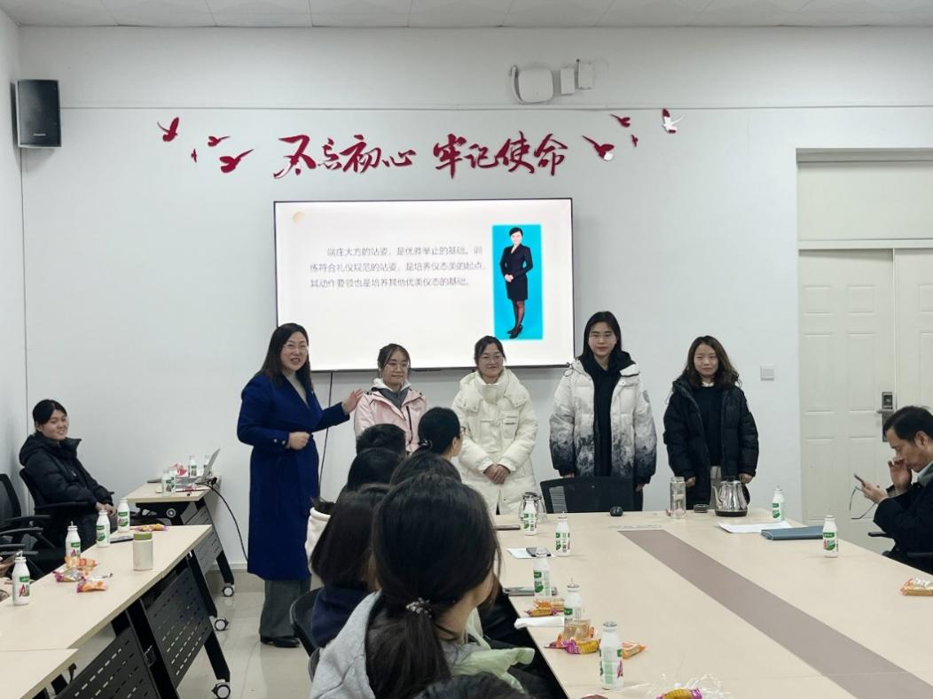在礼仪分享交流活动中,高伟洁老师深入浅出地讲解并示范了日常生活中的礼仪规范,从规范的站姿、坐姿、走姿,到亲切得体的微笑、眼神交流以及问候礼仪等,通过生动的案例和情景模拟,让师生们深刻体会到礼仪在人际交往中的重要性,以及其所蕴含的对他人的尊重与自身修养的彰显。同学们积极互动,在实践中不断纠正和完善自己的举止,力求将优雅的礼仪融入到日常生活的点滴之中。