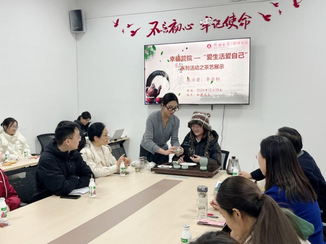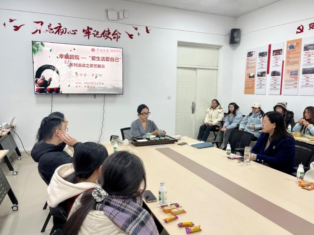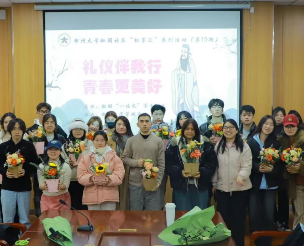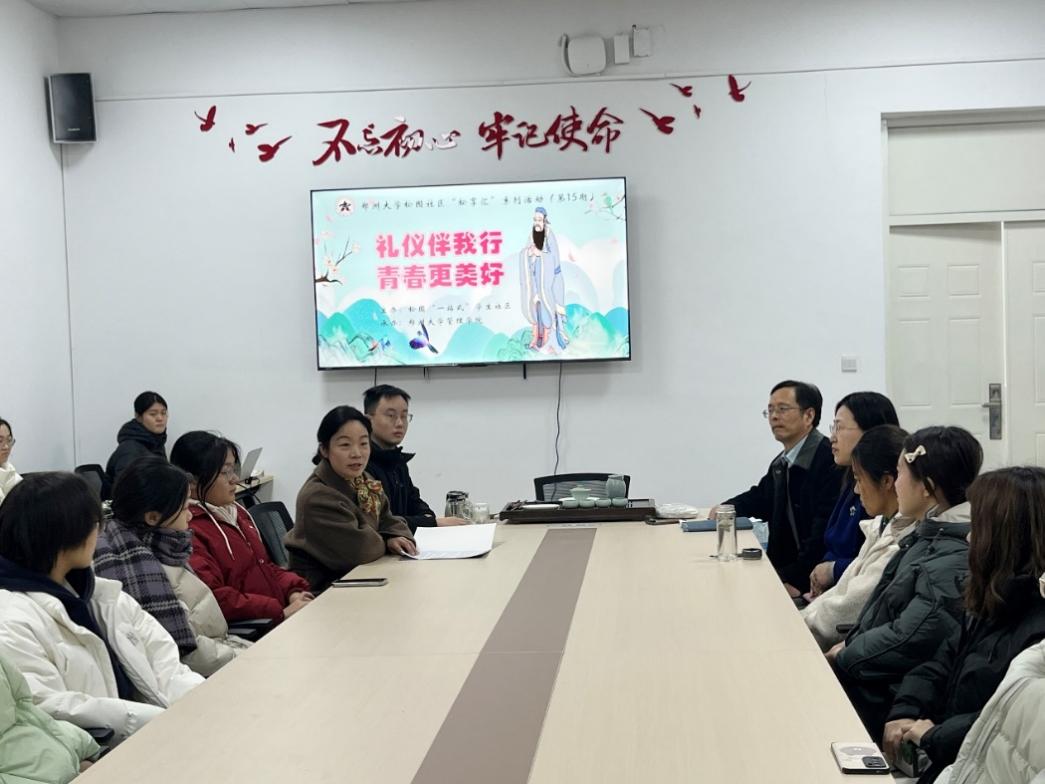 为传承和弘扬中华传统文化、提升大学生的文化素养与审美情趣,进一步推进“一站式”学生社区建设,“礼仪伴我行,青春更美好”主题活动于12月19-20日在松园学生社区服务中心二楼党建活动室和多功能演播厅举行。该活动由松园社区主办,管理学院承办。活动内容包括礼仪、茶艺与花艺的分享交流。松园社区主任、党委学工部副部长、学生处副处长魏民,管理学院党委书记王淑英分别发言,管理学院党委副书记王晓颖、辅导员张仕杰,团委书记邓欣欣分别主持了相关活动。松园社区、管理学院副教授高伟洁、辅导员乔洁、王双强,刘殊妤和学生代表70多人参加了活动。