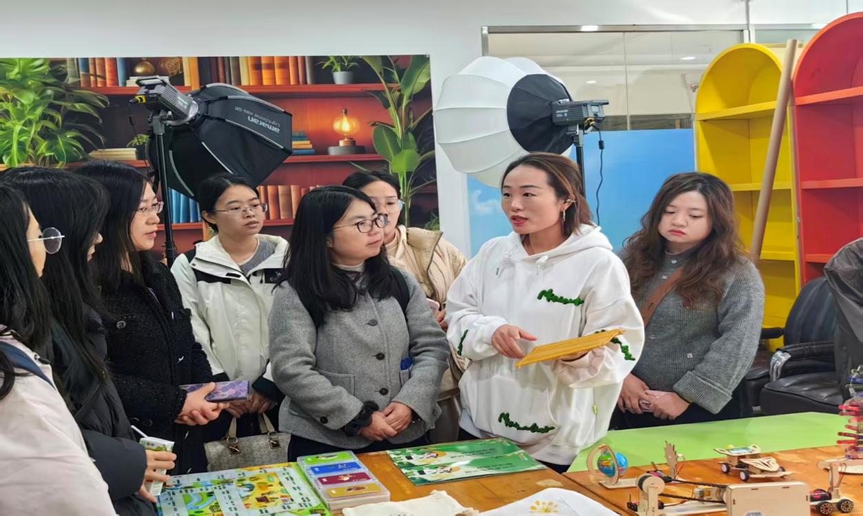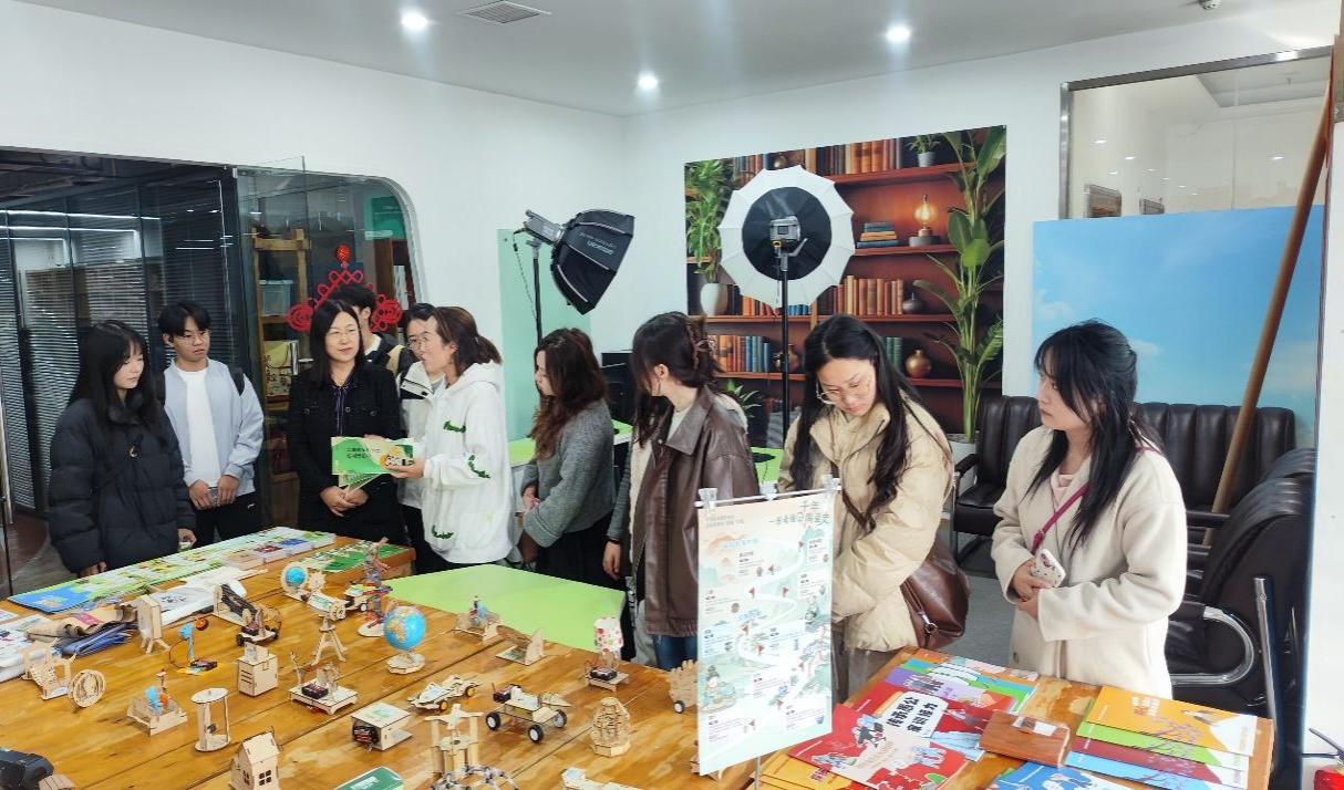 上午九时许,师生一行抵达行知塾公司,受到企业的热情接待。在研学项目课程研发专员赵晶晶与冯宏杰的引导下,研学项目总经理王梦洁亲自带领同学们参观了公司的核心研学项目,通过介绍研学项目的相关教具,让大家对研学产品的落地实施与运营管理有了直观认识。