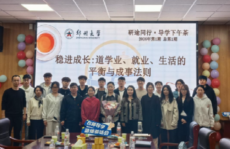 为扎实推进“四全育人”“五育并举”教育理念落地见效,进一步畅通师生沟通渠道,构建和谐的导学共同体,4月8日下午,由研究生院、党委研究生工作部主办、管理学院承办的郑州大学首期“研途同行·导学下午茶”顺利举行!校党委研究生工作部部长、研究生院副院长张世勋,管理学院党委书记王淑英,校党委研究生工作部副部长赵强,管理学院党委副书记范媛媛,校党委研究生工作部张梦媛出席,活动由学院研究生辅导员郭安宁主持。